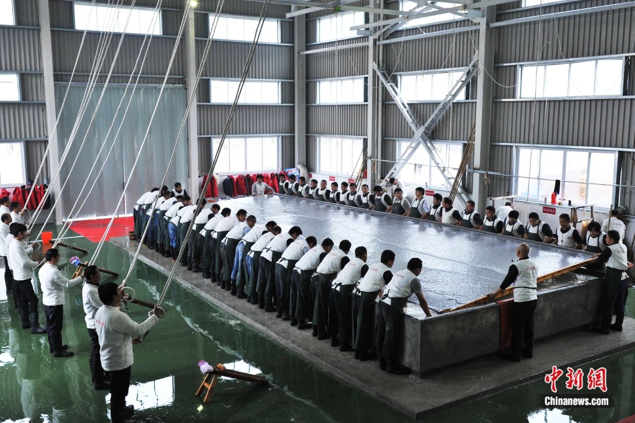 “三丈三”宣纸捞制现场。尹建生 摄
