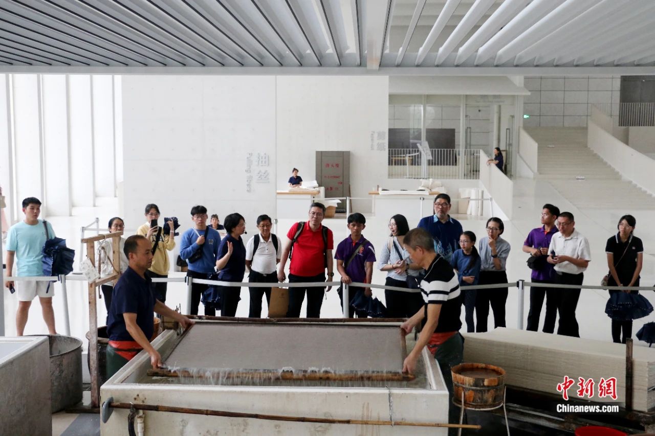 游客在非遗体验馆可亲手体验捞纸、晒纸等工序;夜晚则可欣赏沉浸式新媒体互动表演《只缘身在纸山中》……如今,泾县全域正加快推动宣纸产业与红色文旅、节庆等跨界融合,激活古老非遗新活力;发布“纸墨古镇·红色记忆研学”旅游线路,将当地重要革命旧址、宣纸文化园等文旅地标串珠成链,使非遗探索与红色文化巡礼紧密结合。